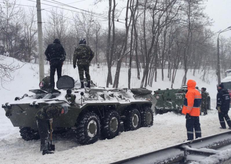 В магазинах полки пустые... Продукты не завозят, а тут еще БТРы.....