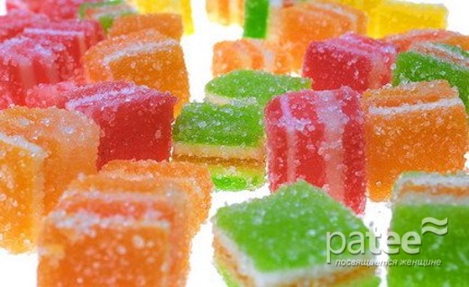 Мармелад считается конфетой, но с немного другими свойствами. Его производят из патоки, желатина и пектина. Натуральный пектин полезен для организма человека. Больше всего пектина находится в яблоках, сливах, абрикосах и черной смородине, поэтому старайтесь выбирать среди мармелада сорта именно из этих фруктов. Но учтите, что на современном производстве в мармелад могут добавлять заменители натурального сырья.