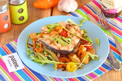 Запеченные рулетики из скумбрии с овощами