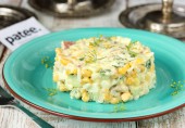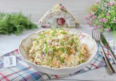 Этот вариант рецепта крабового салата с кукурузой популярен во многих семьях! Классический состав ингредиентов дополнен рисом, который делает салат крабовый более нежным на вкус, а красное яблоко придаёт пикантную нотку!
