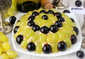 Салат Тиффани с курицей, виноградом, яйцом и сыром подобно драгоценным камням, виноградинки причудливым узором украшают этот необычный салат, который становится похож на изысканное ювелирное изделие, дорогую брошь от всемирно известного ювелирного дома «Tiffany & Co».