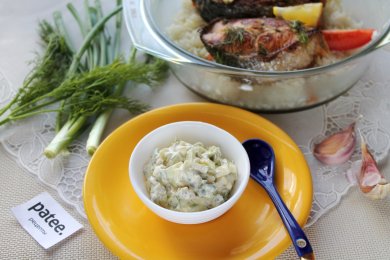Основная идея соуса Цахтон заключается в густом кисломолочном продукте с чесноком, зеленью и другими добавками.