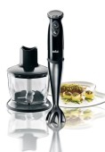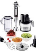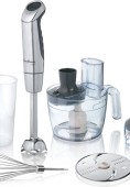 Kenwood HB795 – еще один участник нашего обзора с максимальной мощностью до 700 Вт. Корпус ручки выполнен из алюминия, имеет 5 режимов работы. К основным насадкам и чаше с измельчителем приятным дополнением является насадка-вспениватель. Она хорошо приготовит соус, молочный коктейль, пену из молока для капучино. Отличным качеством «Kenwood HB795» является то, что в процессе измельчения, ему не нужно «помогать» перемешивать продукты, он не оставляет их на стенках чаши. Для шинковки и терки продуктов в комплект поставки входит диск для среднего измельчения. Например, нашинкует морковь для супа или салата, картофеля на драники.