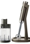 Одной из изюминок этой модели является модернизация «ноги» блендера, он оснащен четырехлопастным ножом «Mixxo quarto». Благодаря этой инновации прибор режет и перемешивает продукты мельче и быстрее. В комплект входит чаша с измельчителем, венчик для взбивания и мерный стакан.