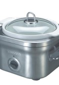 Медленноварка Kenwood CP707 имеет мощность – 350 Вт и максимальное время варки – 10 часов. Корпус выполнен из нержавеющей стали, имеет дисплей системы управления. Емкость ее керамической кастрюли – 4,5 литра, кастрюля легко снимается и моется в посудомоечной машине. Крышка выполнена из ударопрочного стекла.