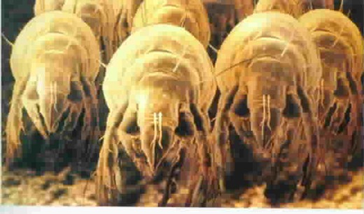 В рекламе пылесосов и чистящих средств, брошюрах и журналах можно прочитать о полчищах клещей, которые живут в наших квартирах и являются составляющей частью пыли. Их около пятидесяти видов, и питаются они омертвевшими чешуйками человеческой кожи. Клещики обитают в подушках, постельном белье, мягкой мебели, скоплениях пыли на полу, особенно в укромных местах, куда не достает веник и не попадают сквозняки. В квартиру они залетают вместе с теми же сквозняками, часто мы заносим их в одежде. Подсчитано, что в обычной двуспальной кровати около двух миллионов клещей. Вреда от них мало, но у некоторых людей они сами и их выделения могут вызвать аллергию.