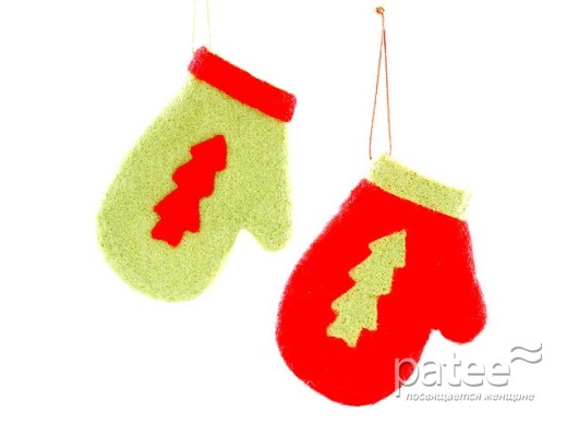 Эти валяные рукавички могут служить и как украшение, и как упаковка миниатюрных подарков.