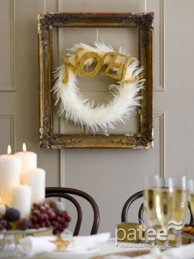 Отойти от традиции позволят праздничные украшения из перьев. Дополните их жемчужными нитями и блестящим декором.