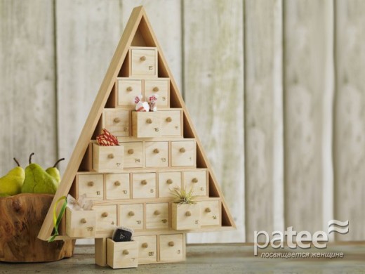 Календарь для подсчёта количества дней, оставшихся до рождества! Деревянное исполнение и необычная конструкция делает календарь очень занятным украшением. Также каждый день — это выдвижной деревянный шкафчик для сокрытия сувениров или пожеланий к рождеству.