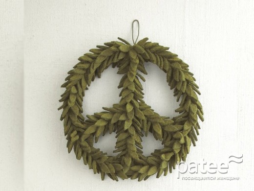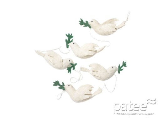 Эти голуби, несущие оливковые ветви мира, оформлены в виде гирлянды. Сделаны они из войлока.
