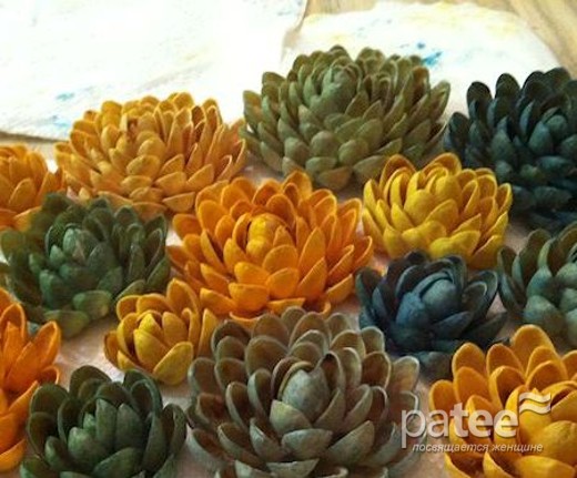 Затем будем понемногу добавлять скорлупку за скорлупкой, чтобы получился цветок.