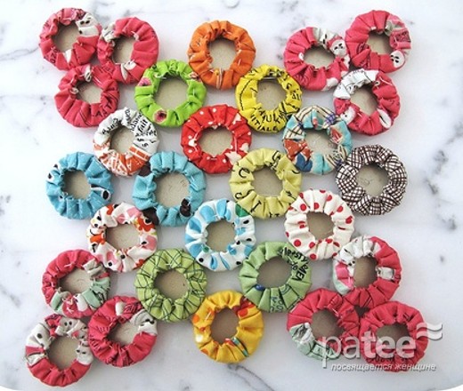Итак, выложим крышечки так, как нам нравится, и вырежем кружочки из ткани нужного диаметра.