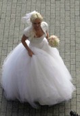 Невеста в платье а-ля Золушка и жених в классическом черном наряде прибыли к месту действия в запланированные 17.00 и припарковали свой автомобиль на специально организованной парковке, которая обошлась им в 3.000 рублей за час - ровно столько они и пробыли в “Лужниках”.
