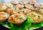 К приходу гостей можно приготовить закуски в тарталетках. Тарталетки с начинкой можно подавать на фуршетный или праздничный стол.