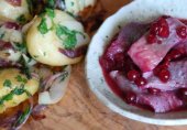 Рецепт столь же аппетитный, сколь и простой. Самое сложное в нем – почистить селедку.Но все не было бы так непередаваемо вкусно, если бы к селедке не причитался небольшой гарнир в виде обжаренного картофеля (лучше молодого) с красным луком.