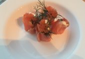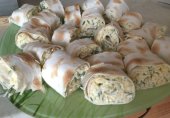 Возьмем лосось слабой соли(у меня уже был нарезанный) промажем сливочным сыром и свернем в рулетик ,разрежаем по полам,сверху украсим икрой красной и укропом👏