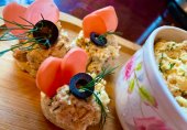 Готовим симпатичные закусочные мини тарталетки с сыром и помидорами черри! Такие аппетитные тарталетки готовить очень легко, они маленькие, на один укус, поэтому блюдо отлично подойдёт для фуршета или коктейльной вечеринки.