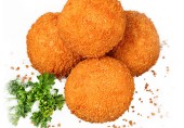 Шарики из сыра моцарелла в панировке из муки, взбитых яиц с молоком и хлебной крошки, обжаренные в масле.
