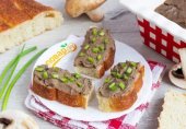 Паштет из куриной печени с шампиньонами, запечённый в духовке, в остывшем виде отлично нарезается тонкими ломтиками, которые идеально подходят для приготовления бутербродов!