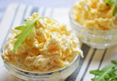 Холодную пастообразную массу из плавленых сырков с добавлением моркови часто называют намазкой “Белочка”, но суть остается прежней - в основе рецепта популярная еврейская закуска.