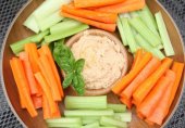 Хумус — закуска из нутового пюре, в состав которой обычно входят оливковое масло, чеснок, кунжут (сезам).