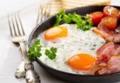 Эффектный вариант подачи яичницы с беконом. Времени занимает чуть больше, чем обычная яичница, зато внимания намного меньше.