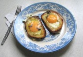 Яйца с хлебом будут еще вкуснее если заправить зеленым луком.