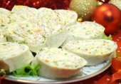 Этот закусочный рулет можно приготовить заранее, накануне праздника, и просто заморозить его. Перед подачей останется лишь дать ему размягчиться несколько часов в холодильнике, а затем часок на столе.