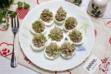 Яйца, фаршированные грибным кремом в Хэллоуин