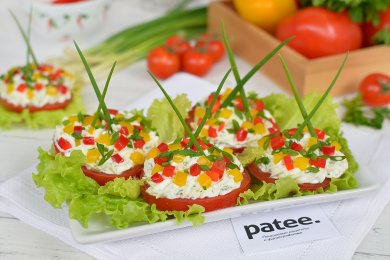 Эта закуска радует и глаз, и вкус, и обоняние. Яркая, вкусная, с ароматом чесночка и свежих овощей. Такая закуска украсит любой праздничный стол и уйдет на УРА!