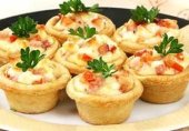 Готовим симпатичные закусочные мини тарталетки с сыром и помидорами черри! Такие аппетитные тарталетки готовить очень легко, они маленькие, на один укус, поэтому блюдо отлично подойдёт для фуршета или коктейльной вечеринки.