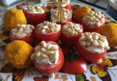 Яркие и забавные "деды морозы" вызовут восхищение, собравшихся за новогодним столом. Готовится закуска из помидоров, фаршированных сыром с чесноком и майонезом, всего за несколько минут, и вы с легкостью подадите простую закуску на праздничный стол.