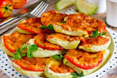 Отличное вегетарианское блюдо! Кабачки, запечённые с помидорами, сметаной и сыром, - это отличная интерпретация известного всем рецепта "мясо по-французски", только вместо мяса выступают ломтики кабачков.