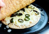 Мексиканская закуска - лепешки с сыром и обжаренным на масле перцем халапеньо. Можно добавить в кесадилью жареные грибы.