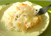7. В процессе брожения капусту нужно прокалывать вилкой для выхода углекислого газа. Рекомендую банку ставить в широкую емкость, т.к. рассол из банки может вытекать.