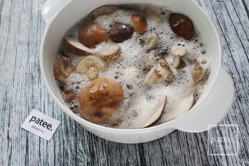 Варим минут 25-30. Затем откинем грибы на дуршлаг и промоем под краном с холодной водой. Остудим.