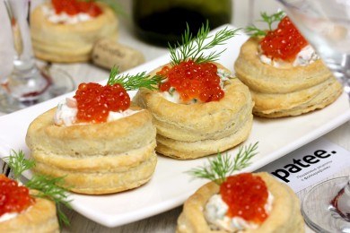Вкусные волованы с семгой, сыром, красной икрой из слоеного теста - закуска праздничная, нарядная, эффектная и, бесспорно, вкусная!