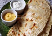 Ингредиенты:Творог - 200 ГраммЗелень - 1 ПучокСоль - По вкусуМука - 1 СтаканВода - 0,5 СтаканаРастительное масло - 2 Ст.