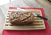 Рулет с начинкой из грецкий орехов с корицей и кардамоном. Рулет имеет несколько необычную форму, потому что выпекается, сложенный втрое - получается что-то вроде буханки из тройного рулета.