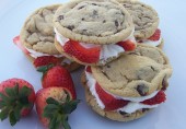 Сладкое печенье с шоколадными чипсами, кремом из смеси для пудинга со сливками и молоком и свежей клубники.