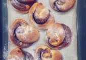 Фото и рецепт с сайта Едим Дома.Дрожжи 30г свежих или 8г сухих активных.Я готовила с яблочной глазурью, для этого смешать 200г сахарной пудры с 3-4ст.