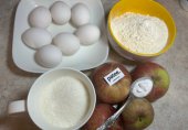 Предлагаю ну очень вкусный и быстрый яблочный бисквит»Перевертыш». Для приготовления этого блюда у вас дома точно найдутся эти продукты.