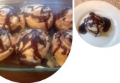 Выпечка с творожно-шоколадной начинкой и творожно-сливочным кремом.