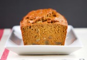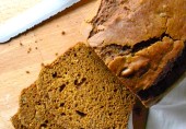 Хлеб из тыквенного пюре с мускатным орехом, корицей, гвоздикой, кардамоном и глазированными грецкими орехами.