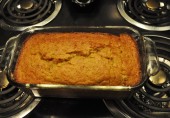 Хлеб на растительном масле с банановым пюре, кокосовым молоком и кокосовой стружкой.