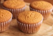 При минимальном содержании муки, без разрыхлителя и соды кексы из правильно замешанного бисквитного теста в силиконовых формочках равномерно пропекаются, внутри остаются светлыми и пористыми, насквозь насыщенными воздухом, снаружи покрываются золотистой корочкой.