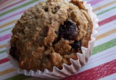 Легкие кексы на цельнозерновой, миндальной и льняной муке с овсяными хлопьями, кокосовой стружкой, бананом и шоколадом.