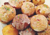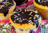 Мини-кексы с ромовым экстрактом, покрытые растопленным шоколадом и украшенные сладким дождиком.