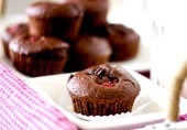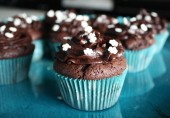 Мини-кексы из шоколадного теста с шоколадными чипсами, покрытые шоколадным кремом.