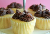 Мягкие, нежные ванильные мини-кексы, покрытые шоколадным кремом.